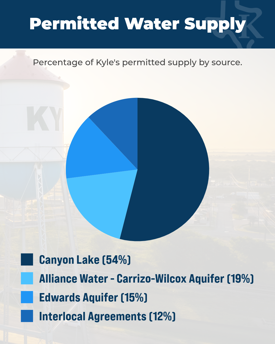 The remaining 12% of Kyle’s current total permitted water supply is provided through interlocal agreements with the City of San Marcos and the Green Valley Special Utility District, offering an additional layer of resilience to the overall supply portfolio.